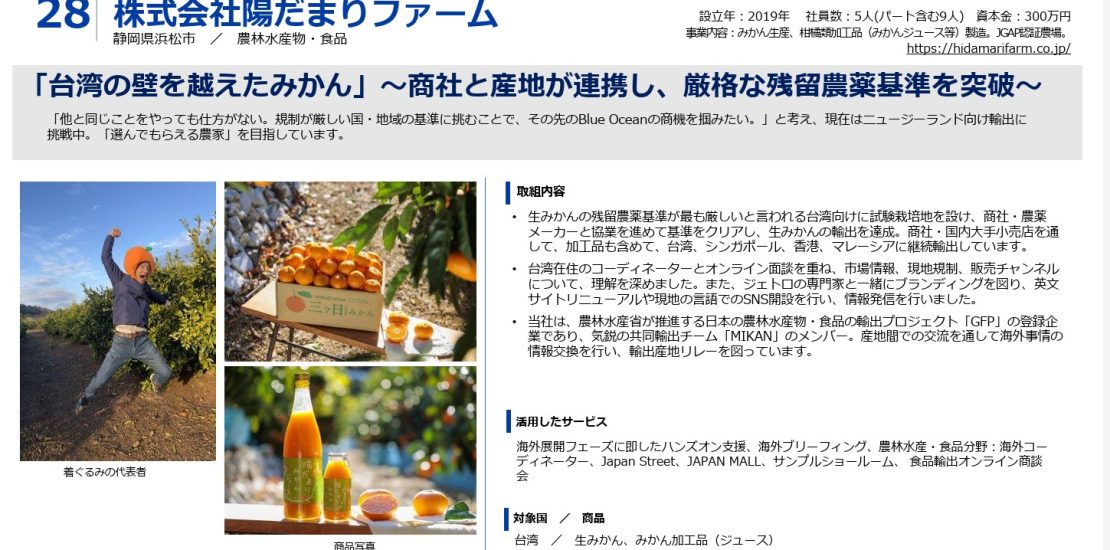 JETRO「新輸出大国コンソーシアム活用事例集」に掲載されました